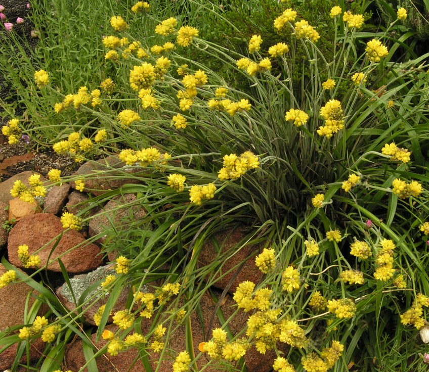 This is a tufted, grass-like plant with grey foliage to 50cm. The bright yellow flower stalks are held erect through spring. It likes full sun and good