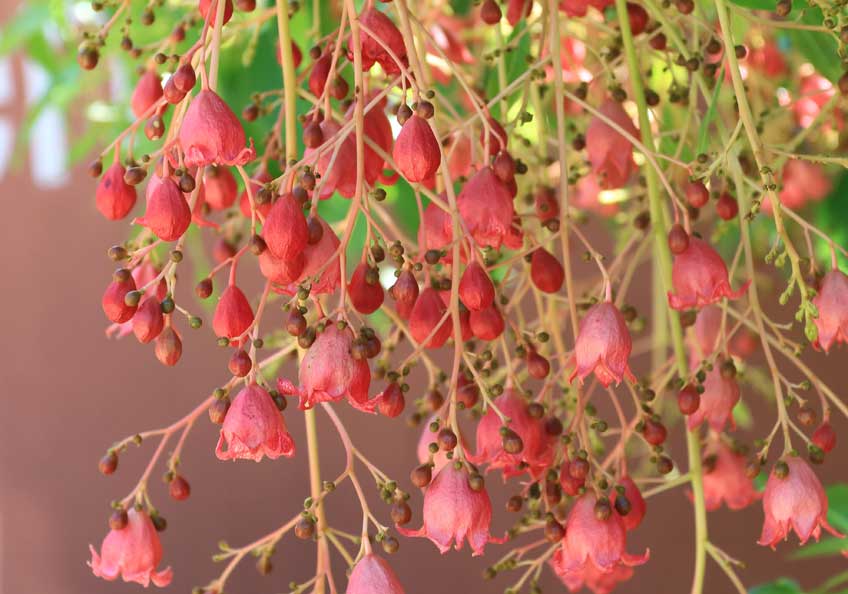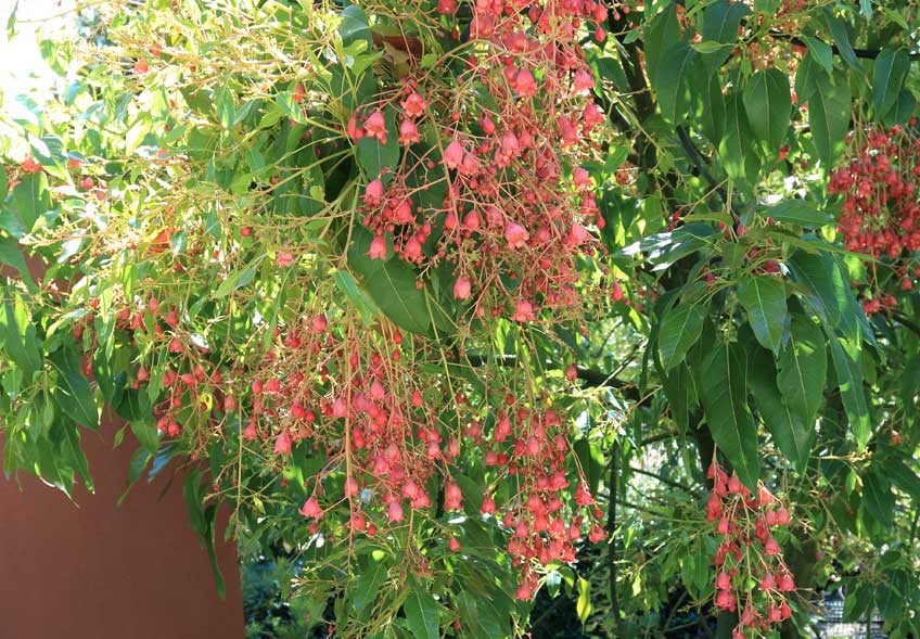 Because it’s a grafted tree, it flowered in the first year it was planted. It has red, Christmas bell-like flowers/bracts in summer, which are followed