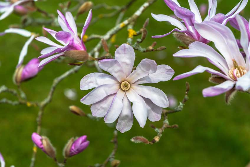 Magnolia ‘G.H.Kern’, has vanished from catalogues but similar star magnolias include M. stellata ‘Rosea’, M. x ‘Liliiflora Nigra’,