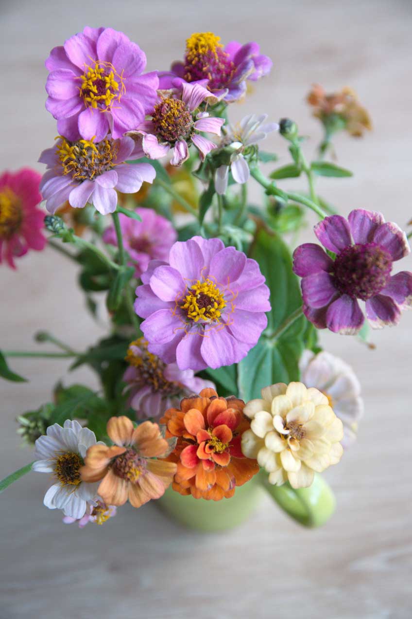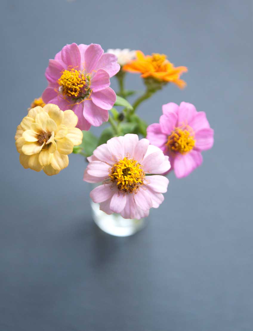 Asked about a plant that makes me smile I immediately thought of zinnias. Roses and sweetpeas make me swoon but zinnias, with their bright, paintbox colours