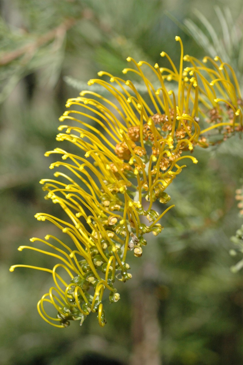 Description: perhaps one of the best hybrid grevillea of all with silvery foliage and stunning golden yellow flowers.