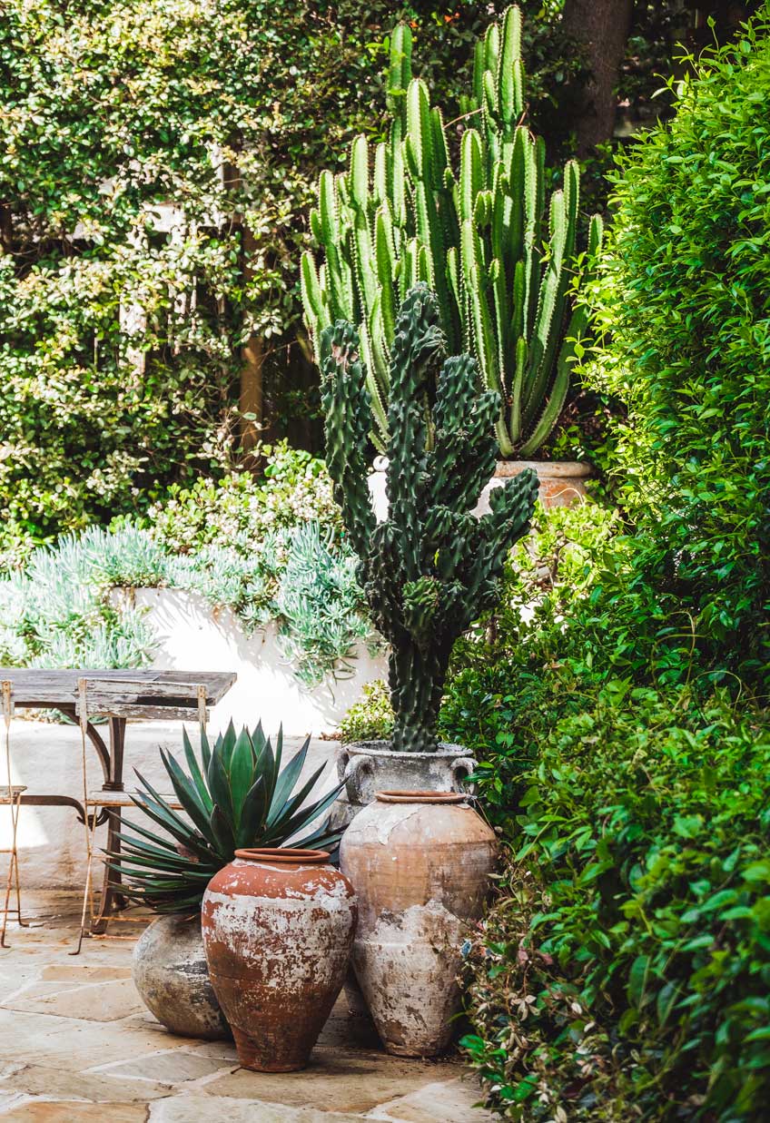 planted with architectural specimens, succulents such as agaves and cacti, “all of which create a sense of drama and add variety to the space”, she