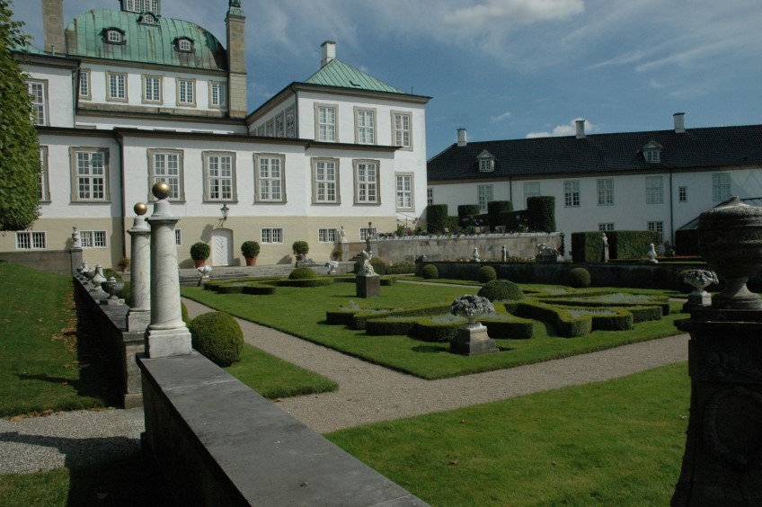 Best of all the gardens here is the vegetable garden, a favourite of Prince Henrik, father of Prince Frederik. It’s very decorative with an arbour of roses its full length, and cut flower beds interspersed with vegetable plots. Huge racks have been placed over the empty beds with onions and garlic drying. The new orangery faces this garden and is reflected in a mirror pond in front. It’s a home for fruiting figs and citrus, but its main use is for functions.