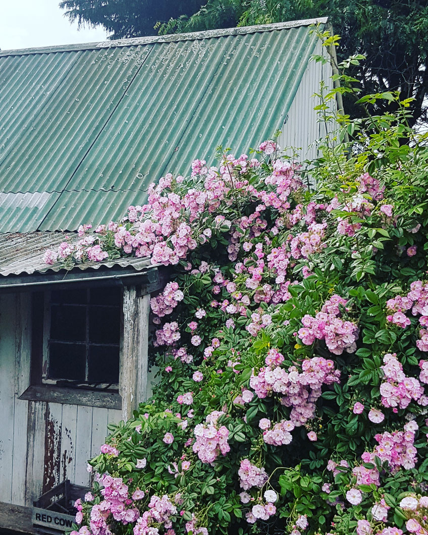 The tea roses aren’t pruned, just tidied. We let them form their natural shape and give them the space they need. Pruning is minimal on the climbers with