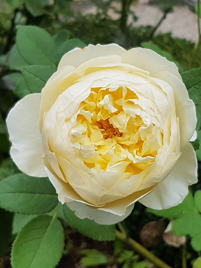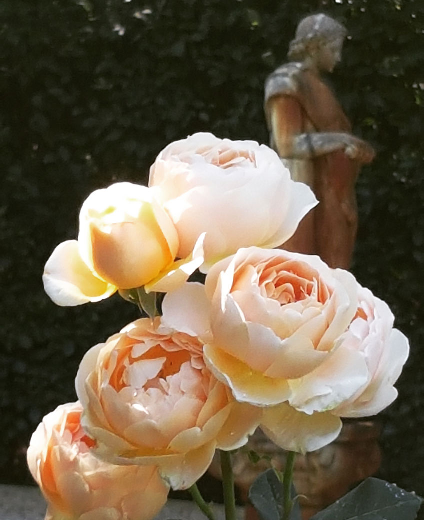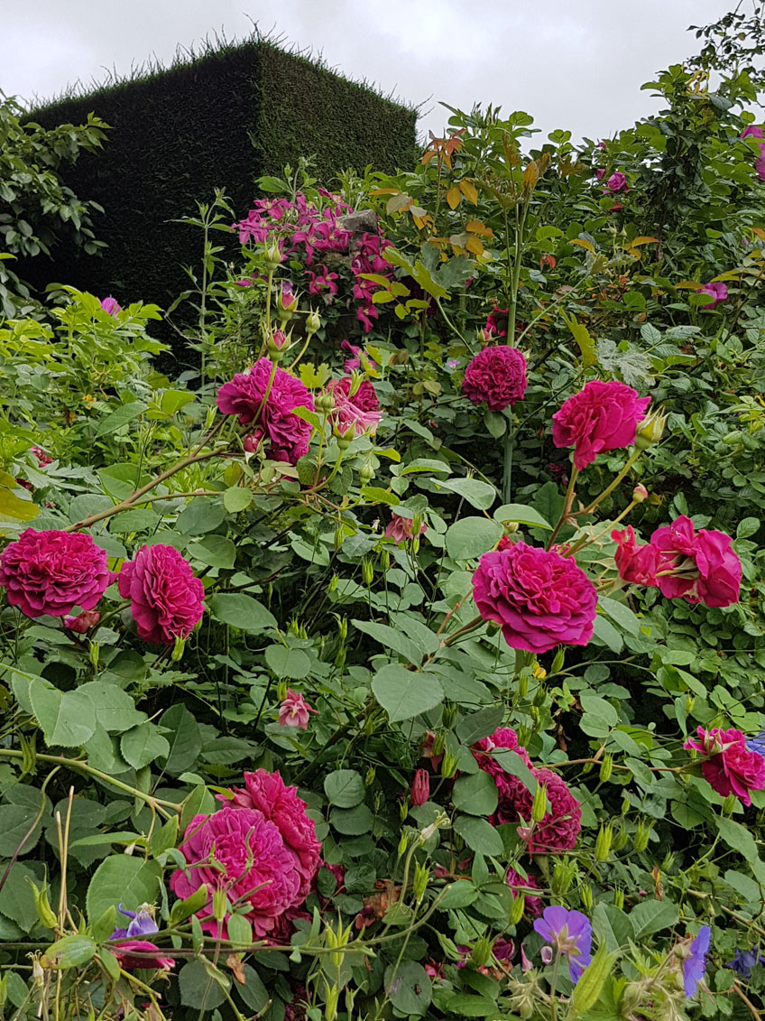 This exceptionally fragrant David Austin rose is planted on a corner in the Abbess Garden, which is a sunken garden. The fragrance really becomes trapped