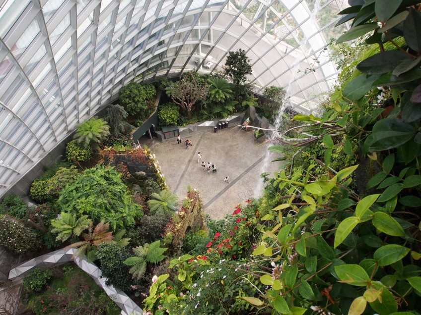 C to replicate the climate of tropical montane regions. A huge waterfall thunders from the top of the ‘mountain’, its spray keeping long arching sprays