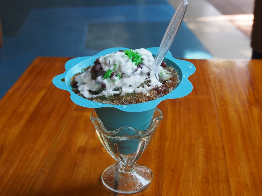 The other must-try chill-down is chendol, a sweet treat throughout south-east Asia. The dish starts with shaved ice piled into a dish or glass. This is