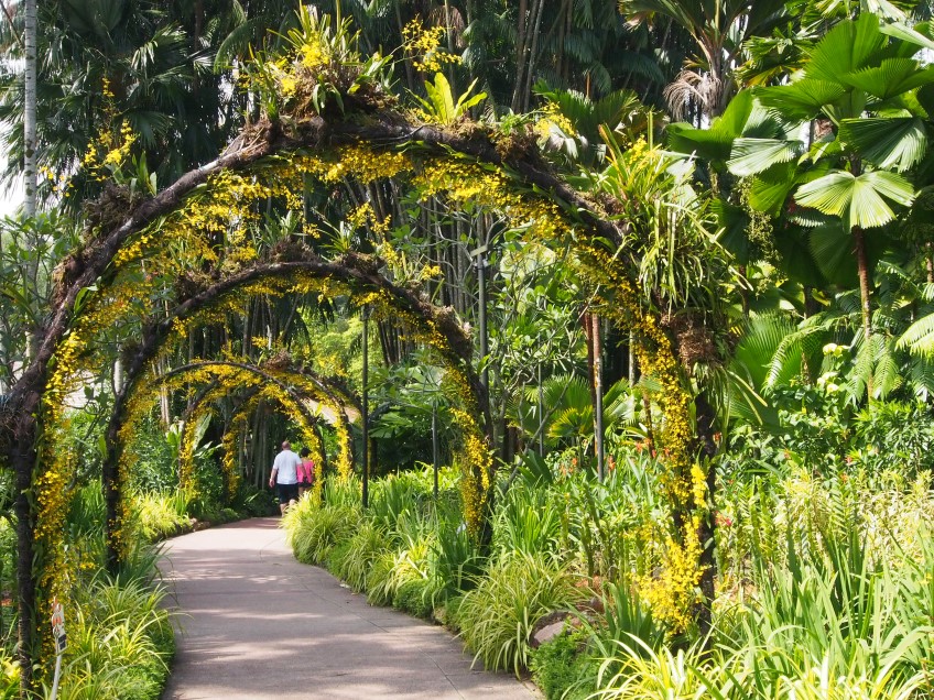 The archway of 'Golden Slipper' orchids in the National Orchid Garden at Singapore's Botanic Gardens. Photo - Robin Powell