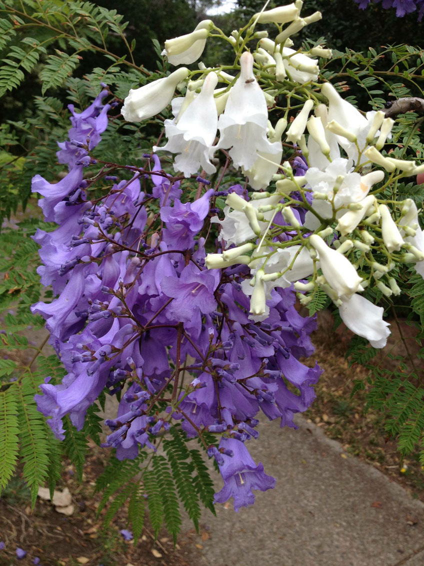 Where there is room, a match-up of purple and the rare white jacaranda make a dazzling duet.