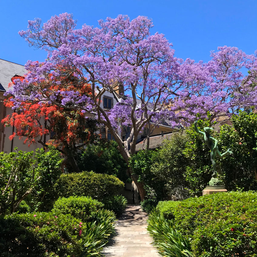 In Sydney jacarandas are best enjoyed beyond the home garden. Hunters Hill and Lane Cove River offer especially good views from the water. On land, Paddington,