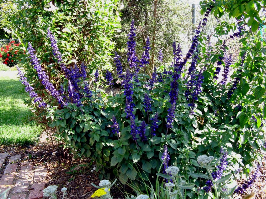 Salvia nemorosa, Salvia gauranitica and Gentian sage (Salvia patens). Blue can add depth and distance and lengthen the view,