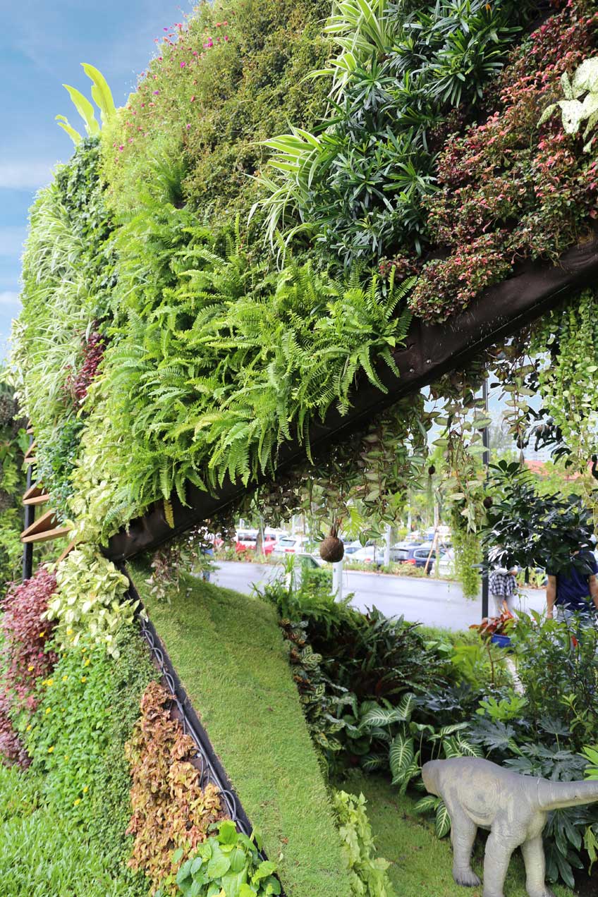 use of plants on different planes and surfaces. Not content with traditional garden beds, vertical walls or the use of hanging plants, the designers