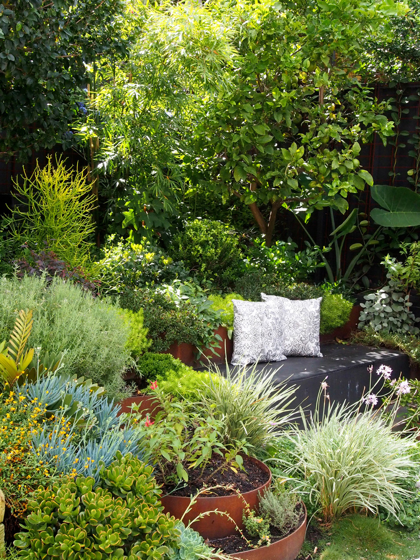His clients knew what they wanted for their small St Peters garden – something that felt like an oasis but was also adventurous. They got just what