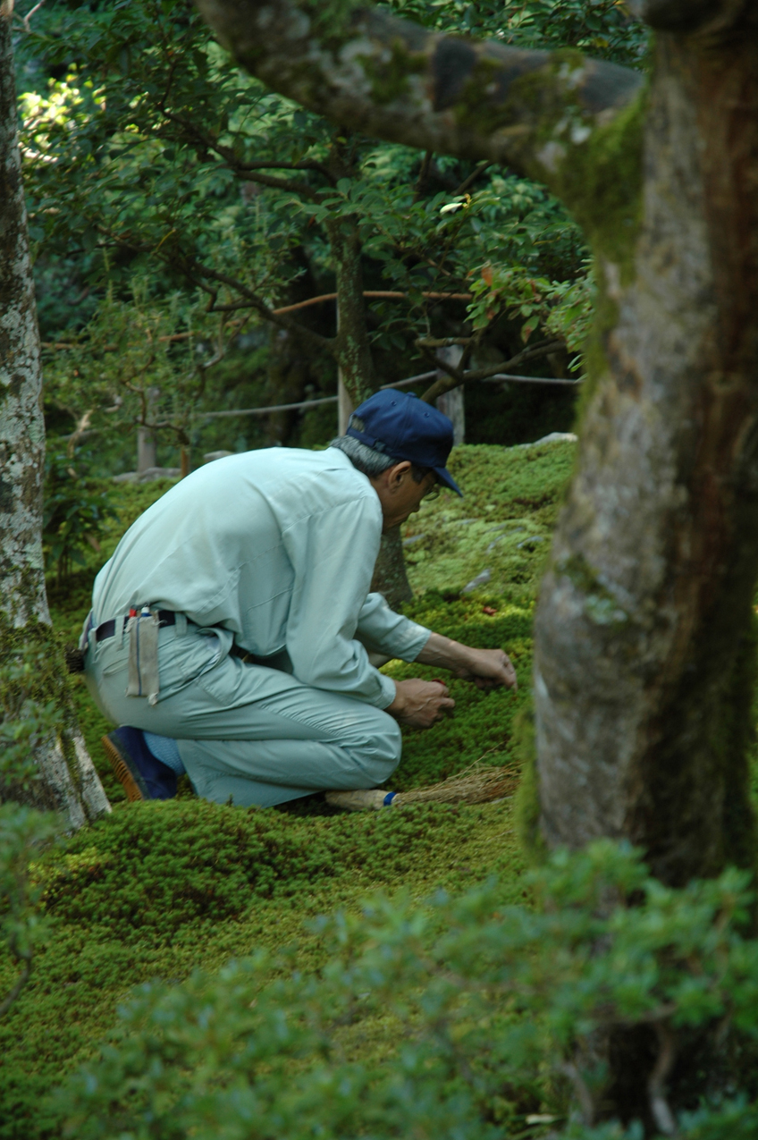 the temples through careful, invisible trimming, the moss is swept of leaves that might damage it and assiduously weeded with tweezers. Unless you