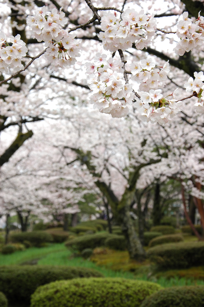 The park around the castle features more than 2,500 cherry trees, which bloom in rows and groves and tunnels, and sprinkle their petals over moats and