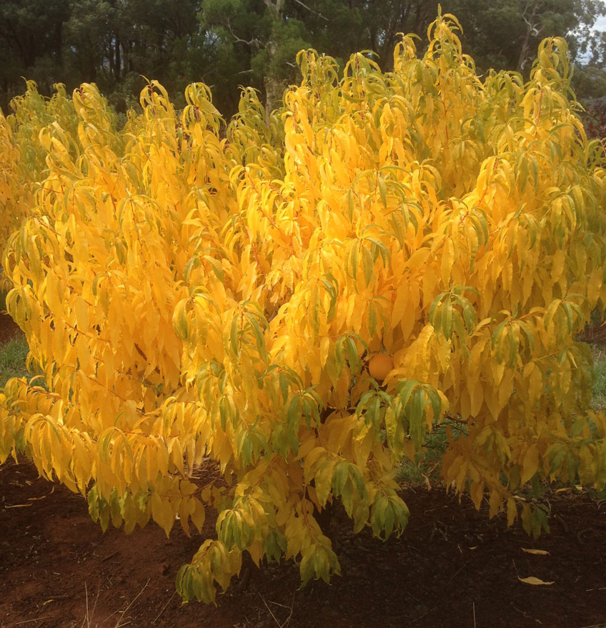 Masses of pink spring blossom, golden fruit, butter yellow autumn foliage and highly coloured winter branches: ‘Dwarf Silvan Sunset Peach’ is a fabulous