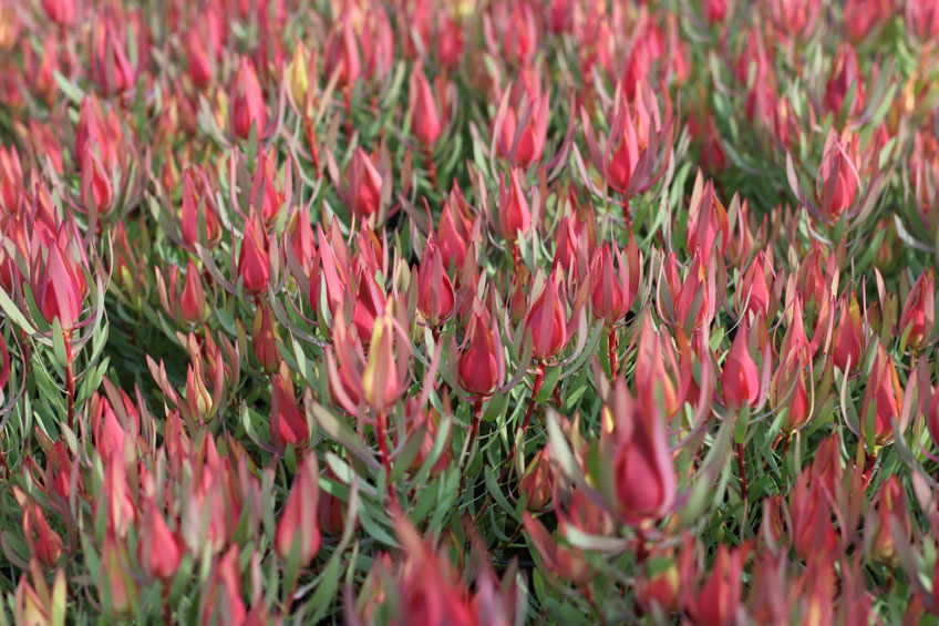 Want showy winter colour? Leucadendron ‘Harlequin’ will make a low border or hedge, a happy garden plant or vibrant container specimen. The long-lasting
