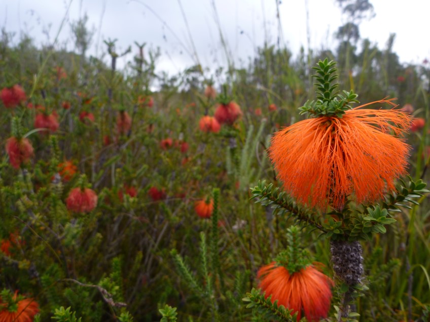 A good example is the habitat of the wreath lechenaultia (Lechenaultia macrantha), a wildflower known for its unusual prostrate ring of foliage