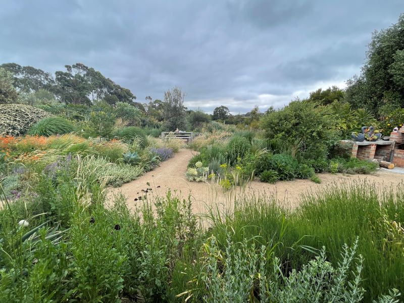 The incredible surprise about all this mad growth and effusive flowers is that it is almost all self-sown. With the exception of a few punnets here and there, Marian lets the garden do its own thing. She lets it rip. It’s a philosophy not without its stresses. The straggly, overgrown end of a plant’s life must be endured till it sets seed. No tidying early. And each winter Marian admits there’s a moment when she almost loses faith. She looks out over the garden in mid-August and can’t stop the nagging feeling that this year it might not all work. “I rush out to Bunnings for a super-sized punnet of something and plant these little seedlings,” she says. Then a few weeks later the growth takes off, “and I can’t even see where I put them!”
