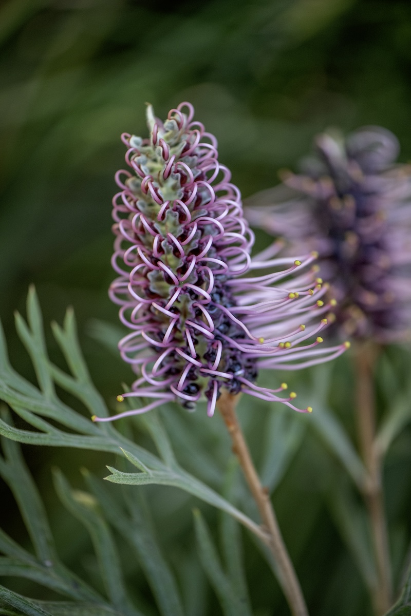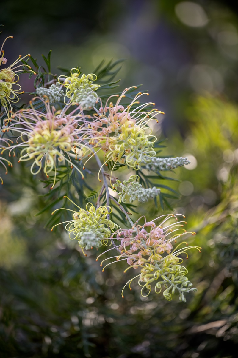 Grevilleas are the mainstay of the flower borders here at Boongala. Nectar-feeding birds love them! Their compact growth provides shelter. Here, ‘Dorothy Gordon’ with its extraordinary colour, two-toned pink and dark burgundy, makes a good informal hedge and privacy screen growing to 3m. Plant in full sun with well-drained soil, and feed with a native-specific fertiliser in spring.