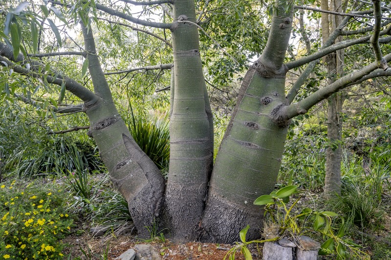 Essential for habitat, shade, and hosts for other plants, there is a fine collection of native trees at Boongala. Casuarina cones (nuts) attract black cockatoos and act as hosts for staghorns, elkhorns, and bush orchids. Native Frangipani (Hymenosporum flavum) with fragrant frangipani-like flowers is a beacon for birds. Queensland Bottle trees (Brachychiton rupestris) are a feature in this garden; some were planted 35 years ago. They make excellent hosts for native orchids.