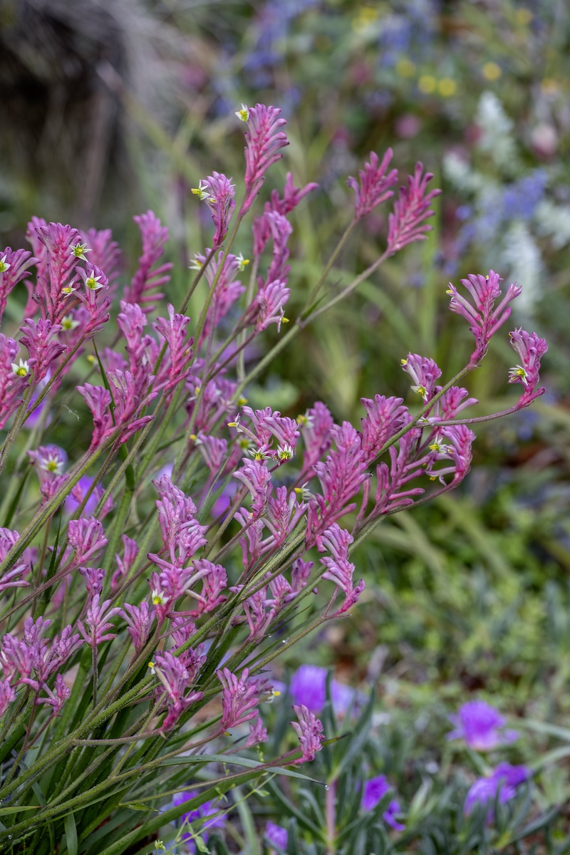 Kangaroo paw (Anigozanthos) is an iconic Aussie plant that attracts bees, nectar-feeding birds, and butterflies. ‘Bush Pearl’ and the entire Bush Gem range flower all year round, provided the soil is well-drained. This dwarf variety grows to 1 metre with prolific flowers and is well suited to growing in pots. Cut the spent flower stems, including the leaf fan that holds the stem, close to the ground to encourage new flowering stems. Feed with a native plant fertiliser—we love Neutrog’s Bush Tucker—in the warm months, and water regularly during hot, dry, or windy weather to promote regular flowering with them.