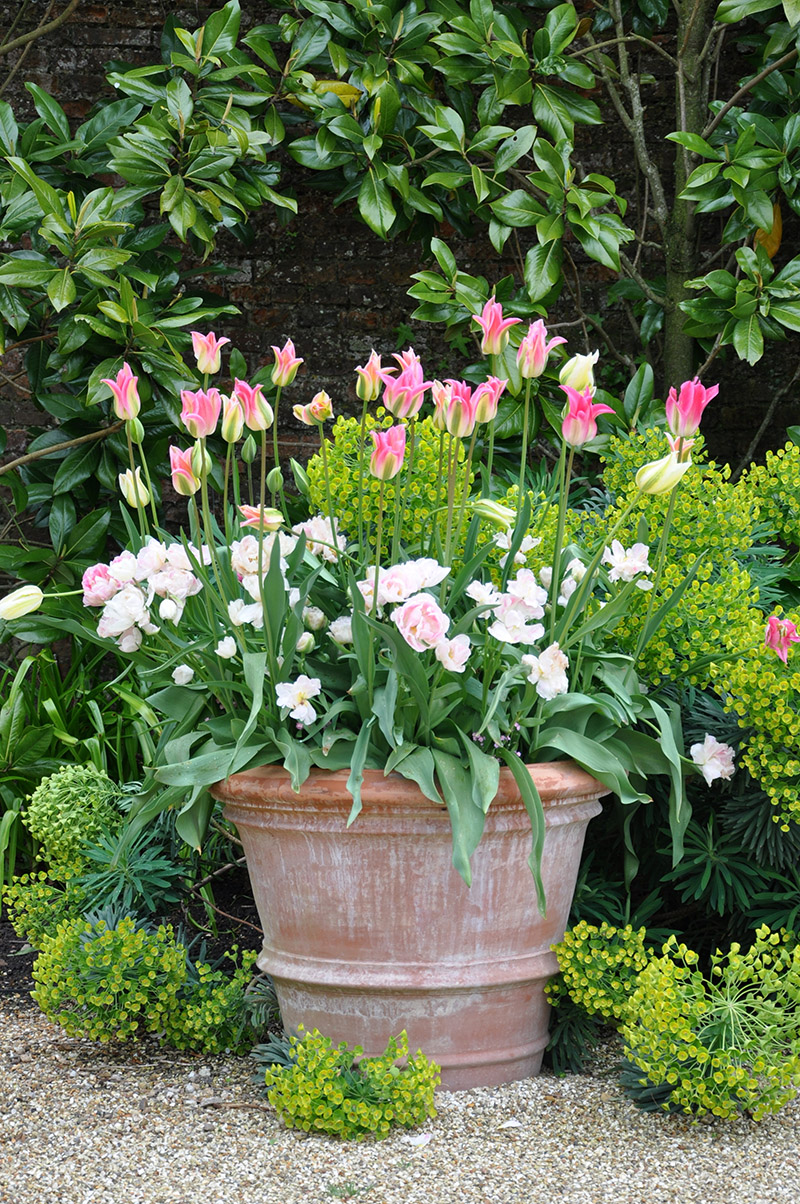 Plant a range of early-, mid- and late-flowering tulips to enjoy a lasting and changing display.