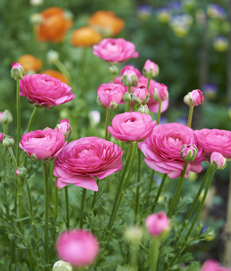 As a cut flower, ranunculus is hard to beat. One of the most rewarding spring bulbs to grow, ranunculus is renowned for its bountiful flower display. Each tiny corm (bulb) will produce up to ten blooms. The flowers are packed full of petals, romantic, perfect for picking; ask any cut flower farm! The Biancheri family of San Remo, Italy, has been breeding anemones and ranunculus since the 1800s. Still family-run, they produce some of the finest blooms in the world, prized by both the cut flower and nursery industries. Each tuber yields at least ten fully double, long-lasting flowers. Sold as Renaissance Ranunculus (from Tesselaar) and Primo (from Van Diemens Quality Bulbs), they represent decades of meticulous breeding for quality, consistency and an extraordinary colour range.