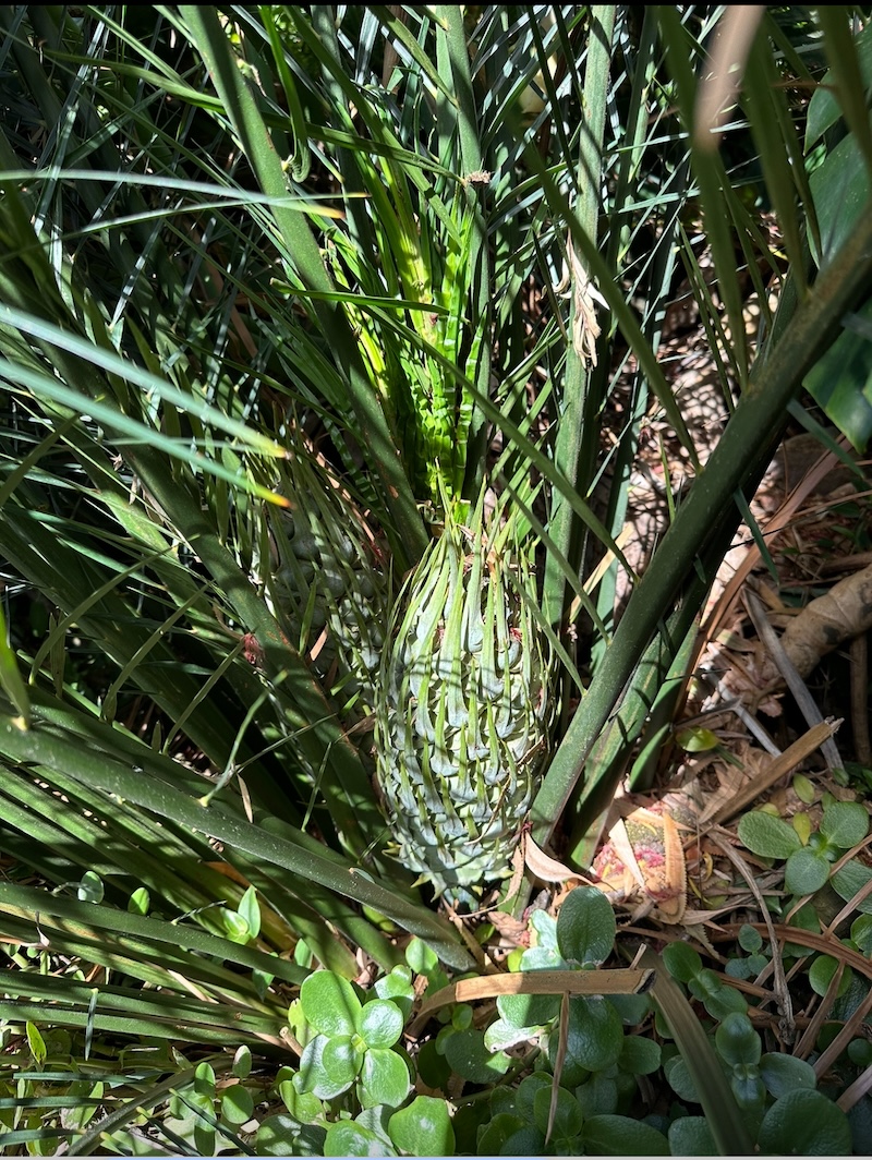 If these growths had appeared on the side of the main trunk, they would be 'pups' or offsets, which later develop into new plants. However, as central growths, they will eventually mature into either male or female flowers. Male flowers are narrower and filled with pollen, while female flowers are stouter and eventually produce a 'fattened pineapple' filled with red-coated seeds. These seeds are viable and can be germinated to grow into new plants, but be aware that the red coating contains cyanide and should only be handled with gloves. While it’s a slow process, you’re helping to preserve one of Australia’s ancient dinosaur plants!