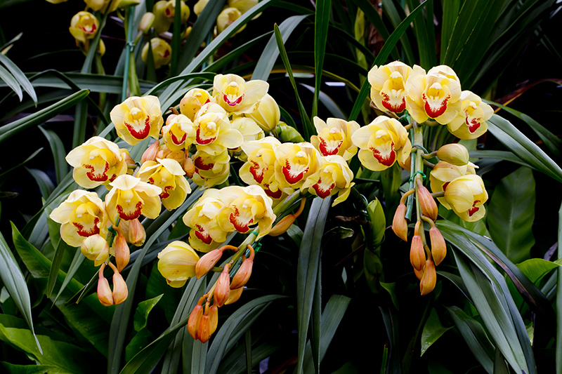A mature, healthy cymbidium orchid often produces multiple flower spikes, putting on a truly spectacular display.