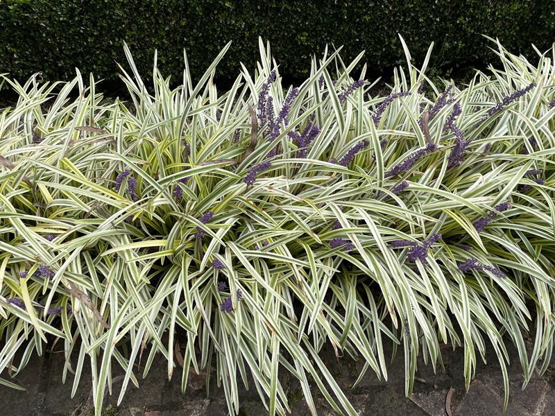 I visited a garden in Leura recently and saw a plant with variegated grassy leaves and blue flowers. It was used an edging plant. Do you know what it might be?