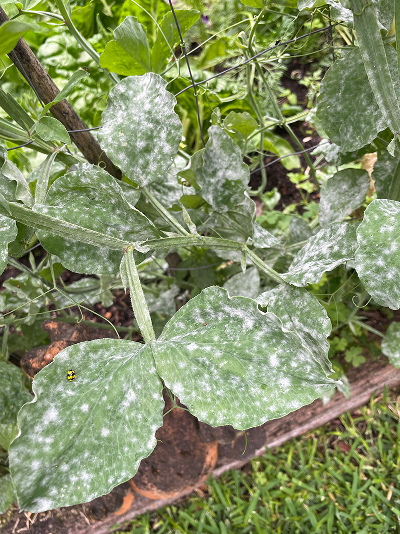 At the end of every sweet pea season, my vines succumb to this white powder that eventually kills the plants. I’m afraid to spray them because they’re also covered in ladybirds. Is there a safe control?
