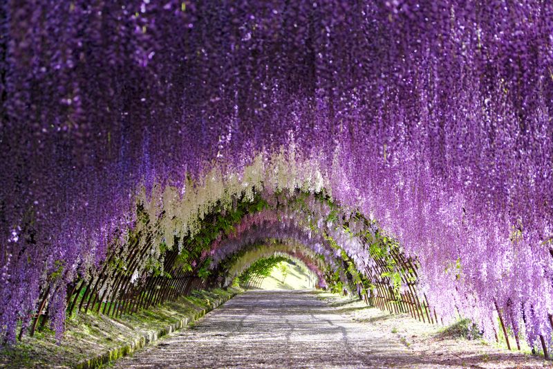 After 38 years of cherry blossom tours, Ross Tours operated our first ‘wisteria’ tour (in 2018) to discover the hugely impressive wisteria tunnels and enormous wisteria ‘trees’ growing in Japan.
