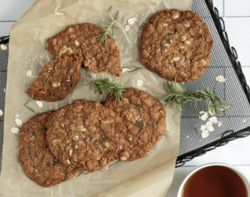 In a large bowl, mix the rolled oats, plain flour, desiccated coconut, brown sugar, and chopped rosemary.