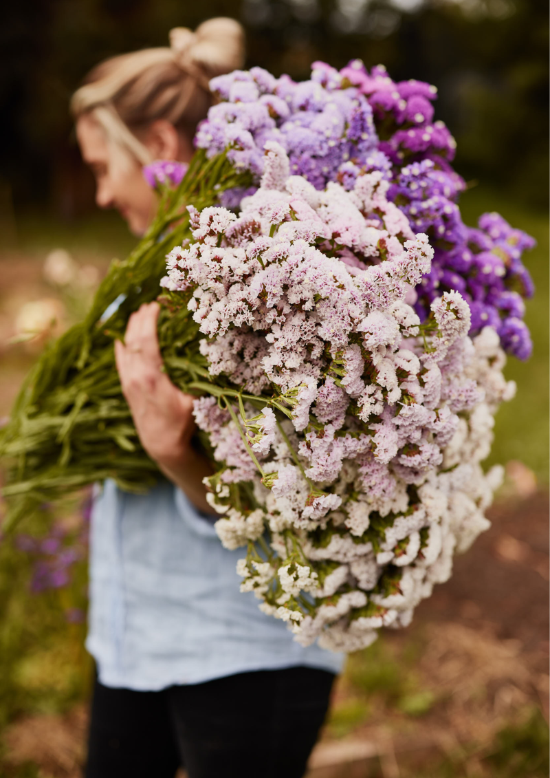 Once established, statice don’t require a lot of water. Cut regularly for indoor displays or hang flowering stems upside to dry. Statice keep their colour for a long time and are perfect in dried floral arrangements.