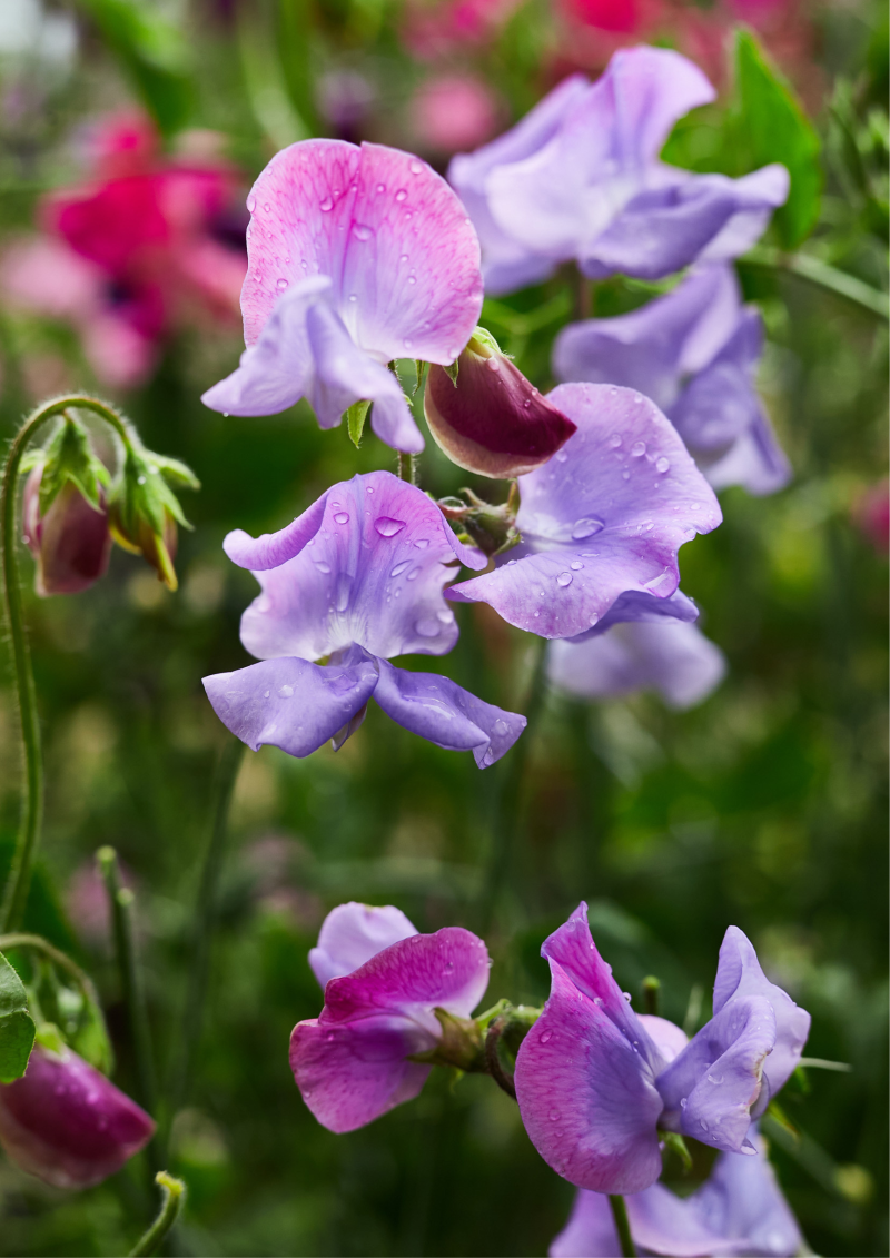 Beautiful and perfumed, sweet peas deserve a spot in your garden. They are available in various single and bi-coloured combinations. Most grow up to 2 metres tall and require staking, but compact forms are available. Sweet peas are my personal favourite to grow in the garden.