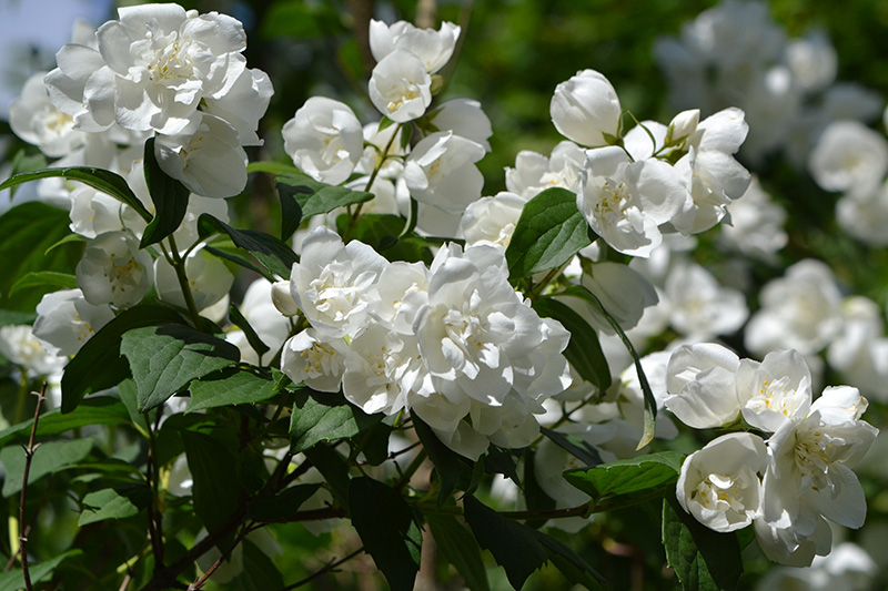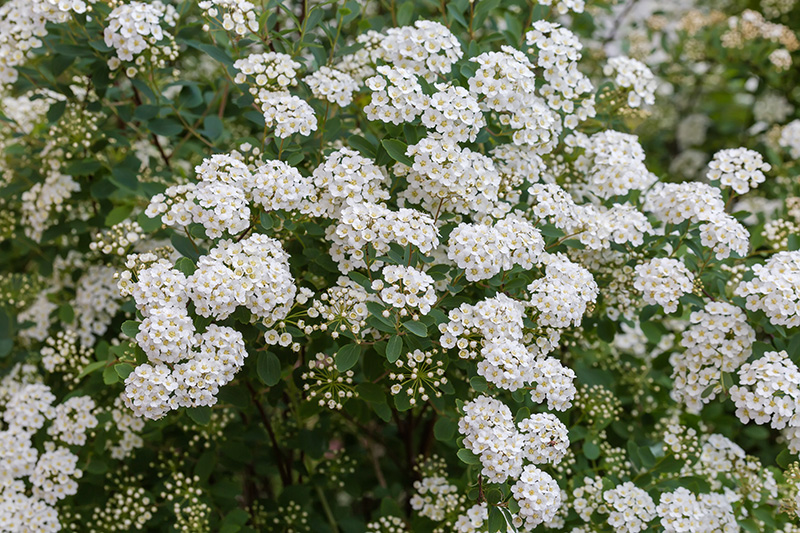 For a while, the common may bush was out of fashion but its generosity and ease of growth has resulted in a resurgence. We usually think of the Chinese white-flowered Spiraea cantoniensis which can have masses of single or double flowers. Personal taste dictates which you choose. It is not at all fussy about soil or even pruning but it too produces canes which become woody with age. Prune as described above. Some like to hedge it, but old canes still need to be removed. H: 2.5m x W: 2.5m
