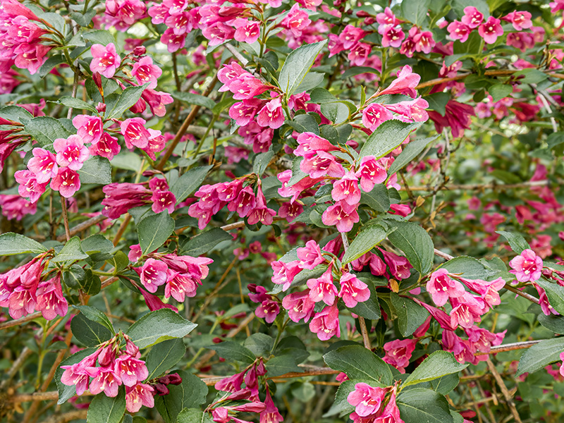 Weigela is making a comeback. In many ways, it is the quintessential spring shrub, a compact but blousy specimen with dainty, arched stems covered in blooms. Flowers range from deep ruby, cerise, pale pink or mauve, white, even yellow. Some have variegated green and cream leaves. The deeper colours have the most impact in a garden while the paler forms with variegated leaves are subtle. Prune them as you would philadelphus, removing dead wood and older canes after three years and reducing others by one-third. Feed after flowering. H: 2.5m x W: 2.5m