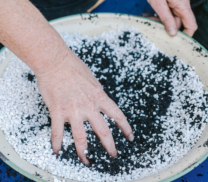 Fill clean pots or containers with the cutting mix. Water the pot well until there is moisture coming out of the bottom of the pot.