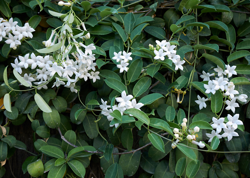 Stephanotis can be attacked by scale or mealybug but these pests are more likely in climates, such as Europe, where it is grown as a house plant. In the open ground, good air circulation will control most pests, though a spray with horticultural oil should suffice. In the Victorian language of flowers, it symbolised a happy marriage.