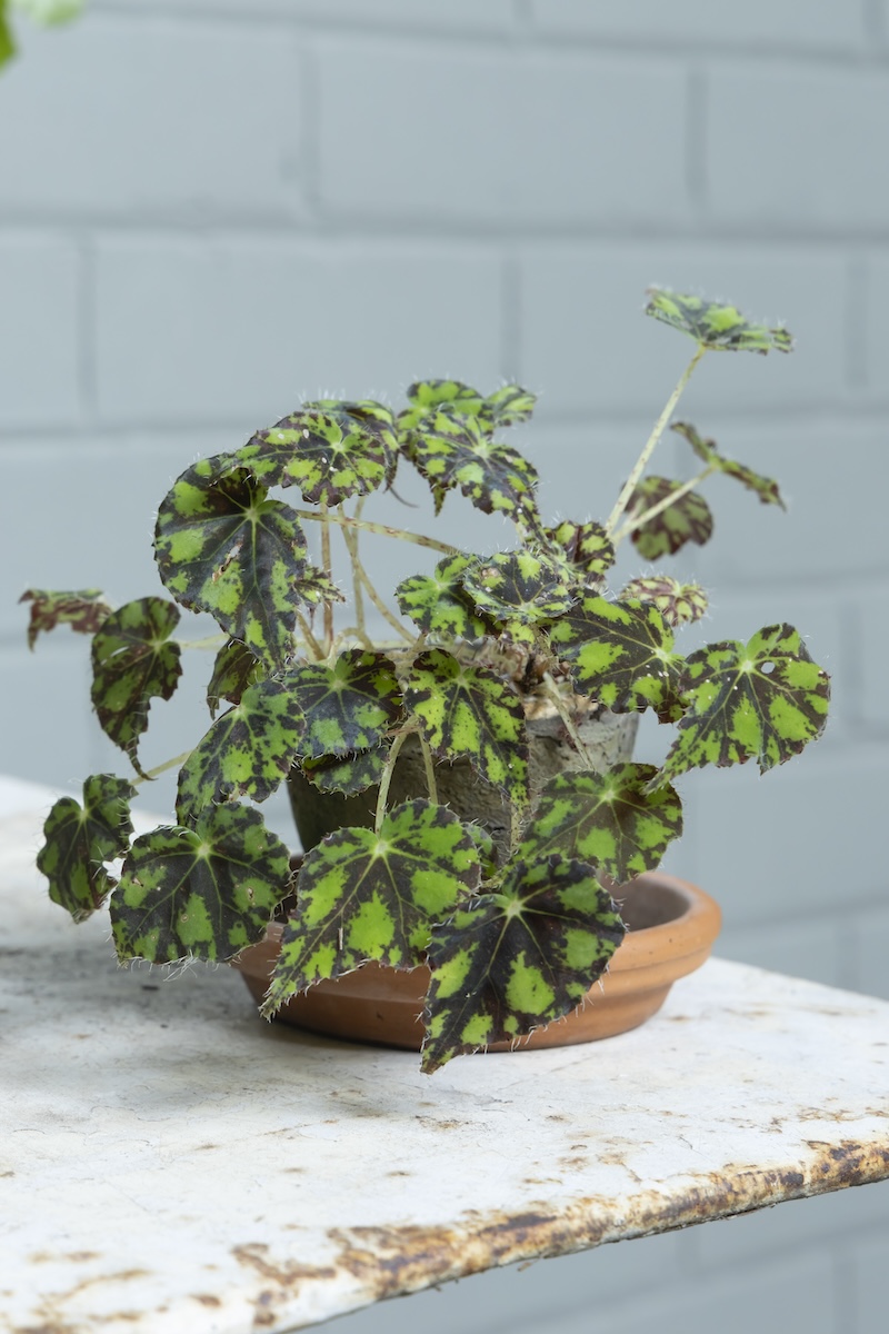 My general growing media ‘recipe' for rhizomatous begonias is one-part horticultural pumice (or grit), one-part orchid mix, three-parts premium potting mix. Alternatively, you can substitute pumice for coarse perlite. This blend ensures for a freely draining potting media, whilst retaining nutrients and water without becoming boggy. Be mindful not to over-water your begonias! Rhizomatous begonias have evolved to store some water in their thick stems, so let them partially dry out before their next watering.