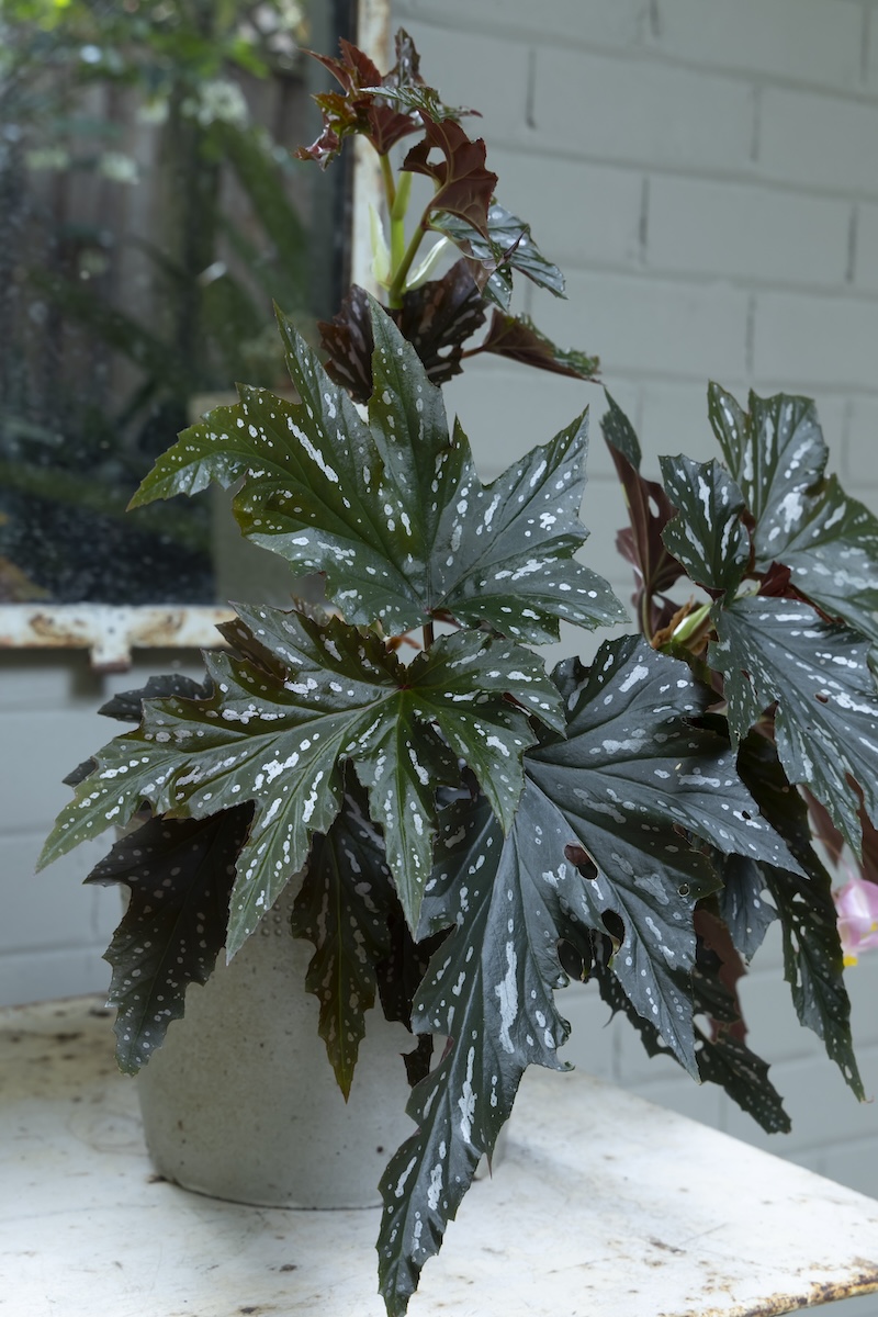 Begonias have so much more to offer than the classic fleshy flowerer —often sold as potted colour — that we’re all used to. There are thousands of cultivars of begonias on offer, and they are well worth growing.For me, I’m fond of the rhizomatous begonias, which have thick fleshy stems that trail along the pot surface, such as Rex begonias, as well as cane and thick-stemmed begonias. They often have large, lush, and patterned foliage, but some are barely the size of a 50-cent piece, and equally as fascinating.